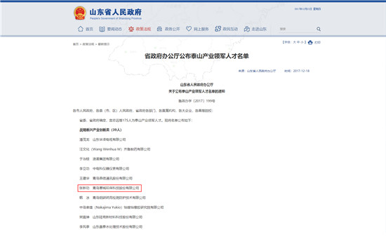 近日,山東省政府辦公廳公布了2017年泰山產業領軍人才名單(魯政辦字[2017]199號)。泰山產業領軍人才工程是一項納入山東省委組織部管理的省級人才工程,是產業界的“泰山學者”。該工程計劃從2015年到2020年,以全省各類企業、園區、產業基地為依托,面向海內外引進培養1000名左右“高精尖缺”產業領軍人才,聚集形成1000個左右產業人才團隊,努力在人才引領產業轉型升級方面做到全國領先的水平。張新功當選為山東省戰略新興產業創新類“泰山產業領軍人才”。